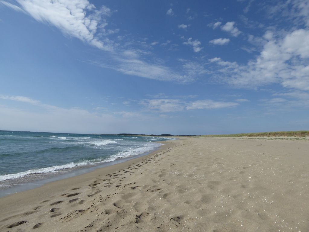 Die Landschaft hat sich am Morgen rasch verändert, zuerst noch bergig, wie fast immer in den letzten Wochen, kamen wir plötzlich in eine fruchtbare Ebene und an der Küste in eine Dünenlandschaft.